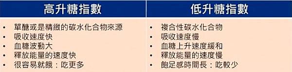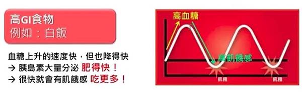 下圖的重點整理就是食物當中,高升糖指數和低升糖指數的區別和影響方向