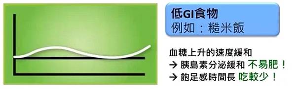 所以如果我們選擇的食物類型是比較低GI的食物類型