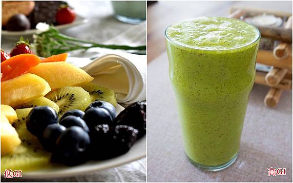 例~新鮮水果vs果汁,果汁的纖維都被打散了,直接吸收血糖就狂飆,所以沒事別把水果打成汁